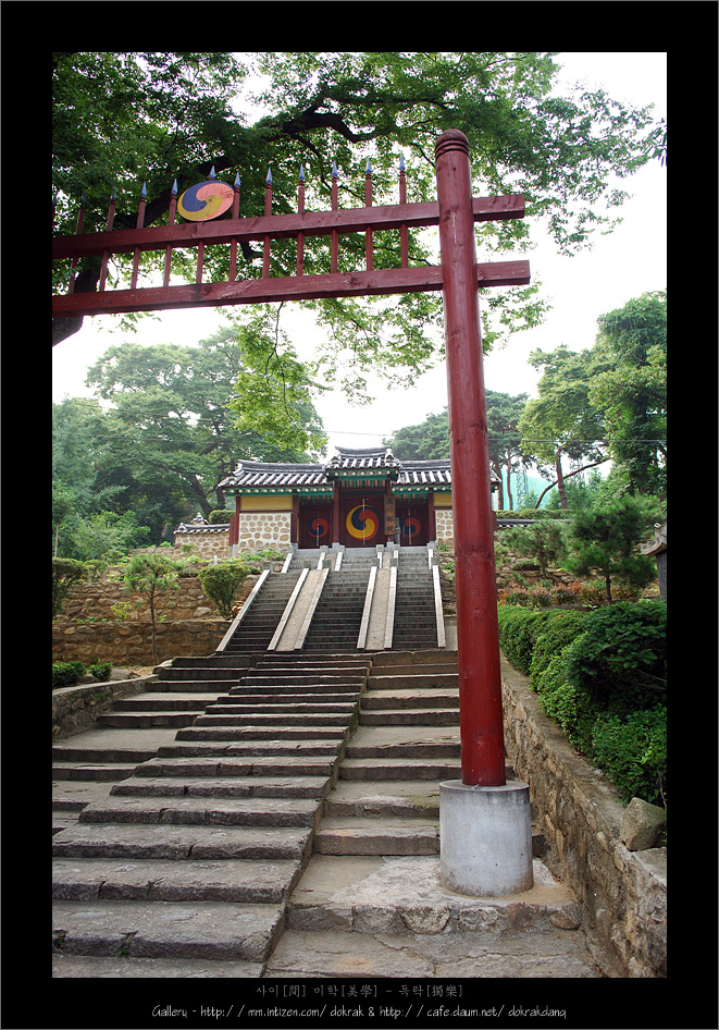 사찰의 일주문을 지나며 스스로 몸과 마음을 단정히 하는것 처럼 이 홍살문 앞에서 저 안쪽에 있을 신성한 존재에 대한 예를 갖추게 됩니다.